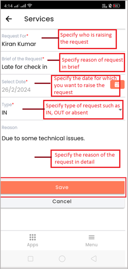 &#x20;If an employee is late for check in or forgot to check in or check out, they will be able to raise an OD request.
