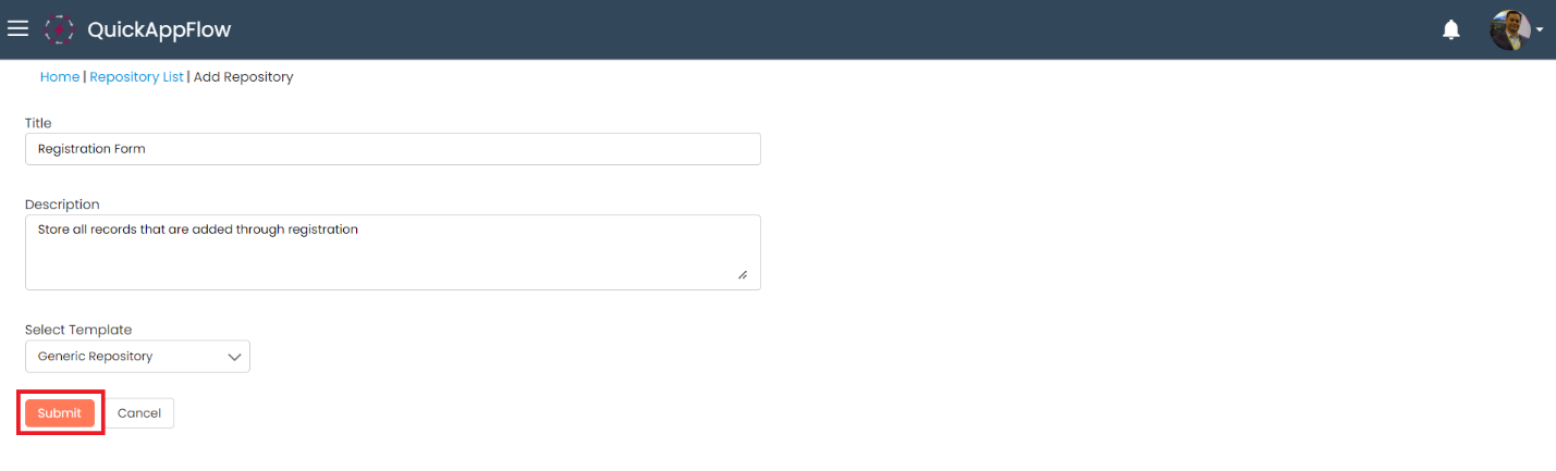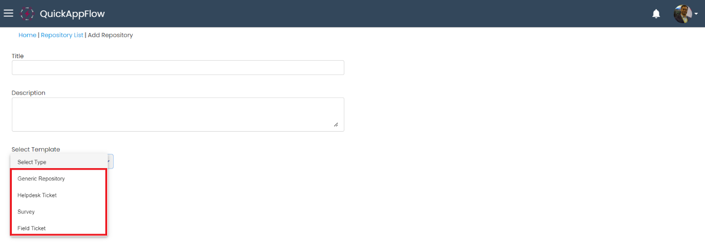Enter Title, description and select template as “Generic Repository”.