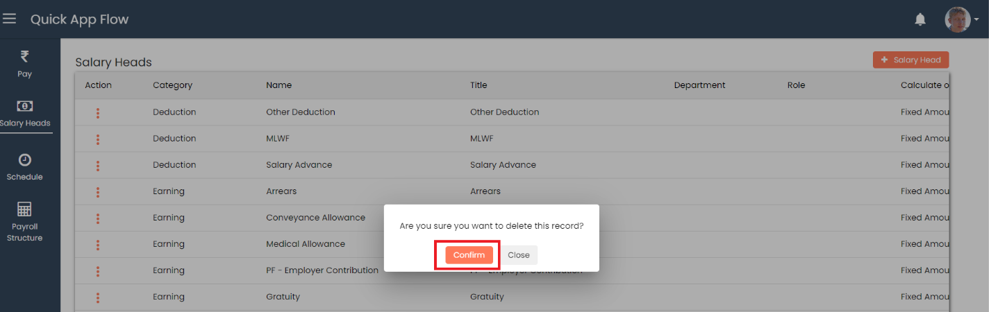 **Delete Salary Head**
