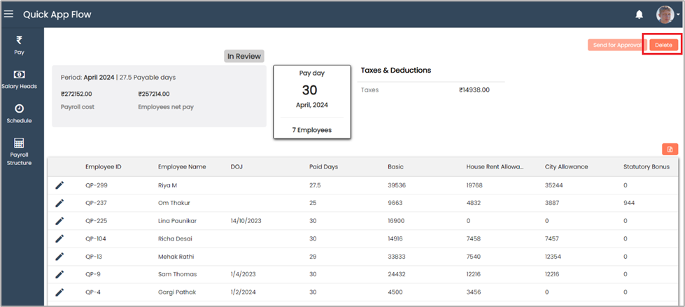 After verifying all employee salaries, you can send them for approval by clicking on 'Send for Approval'.
