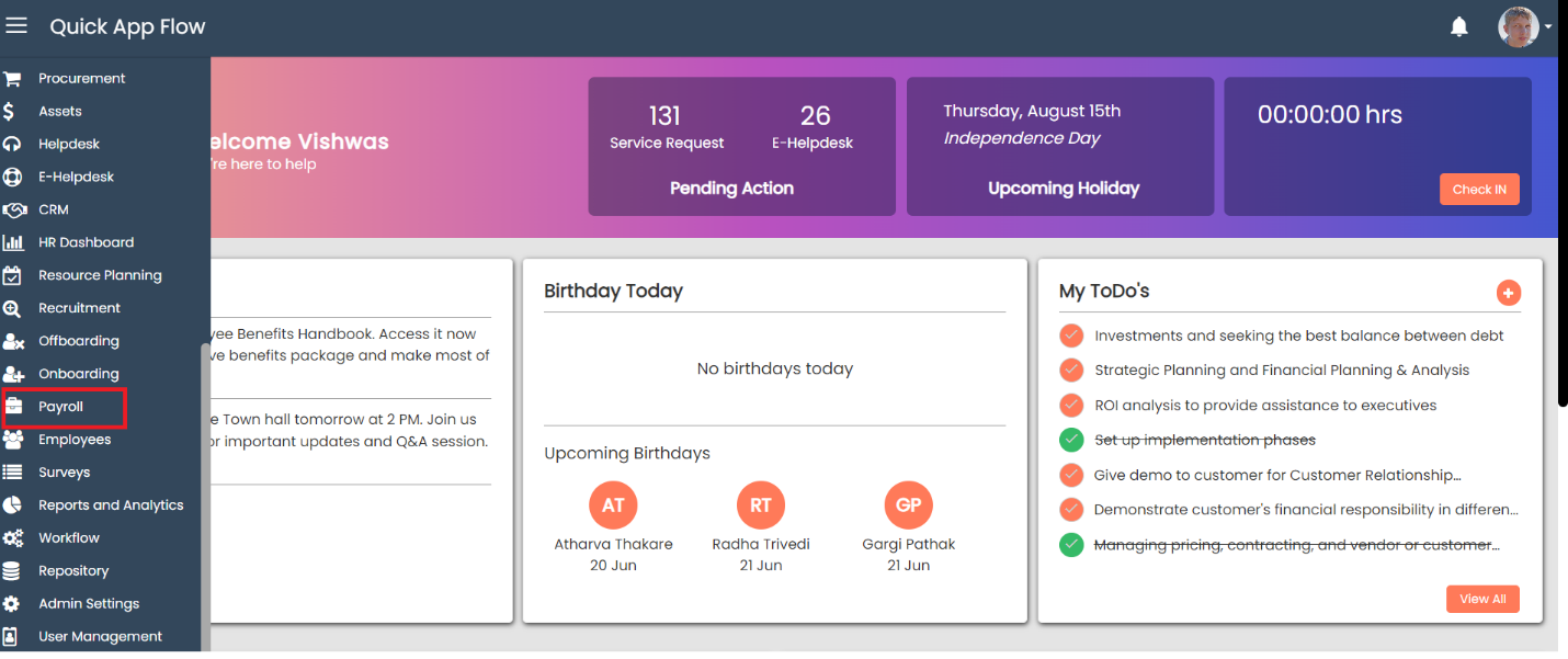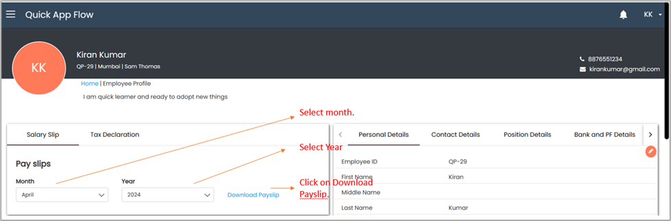 Once the payroll is approved by the approver, employees can download their pay slip for that month from their profiles.