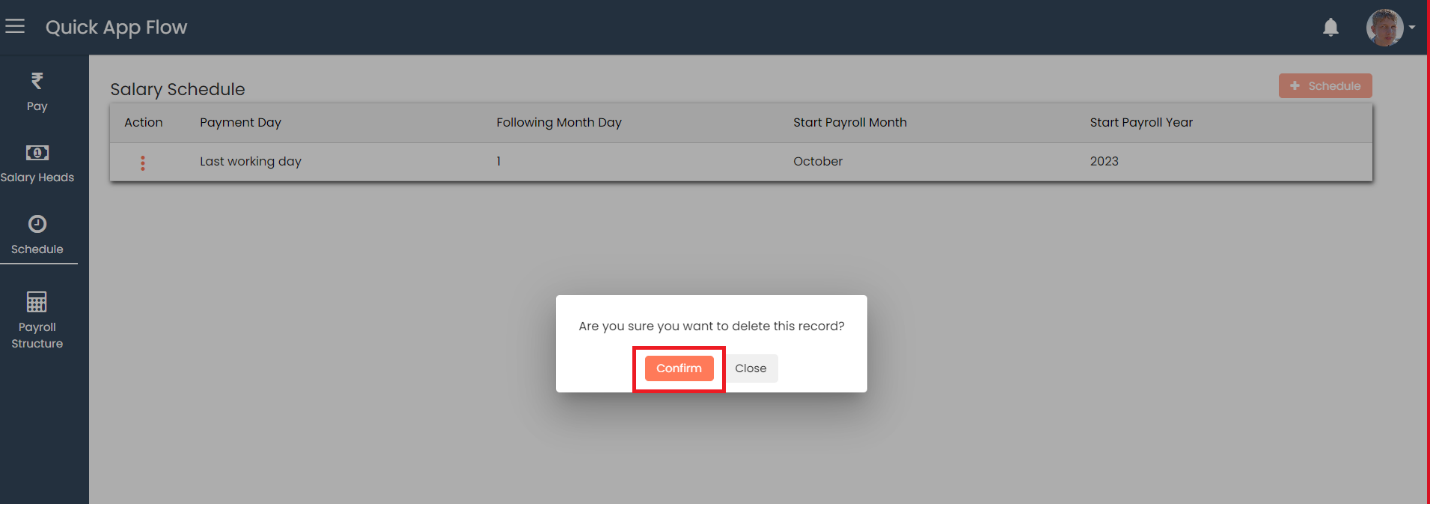 After click on confirm schedule will be deleted.