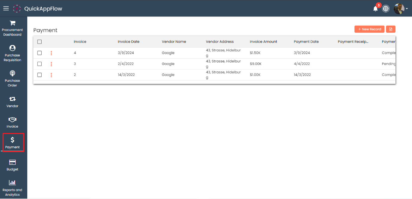 Click on +New Record.