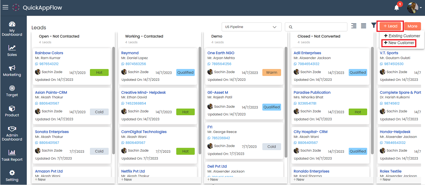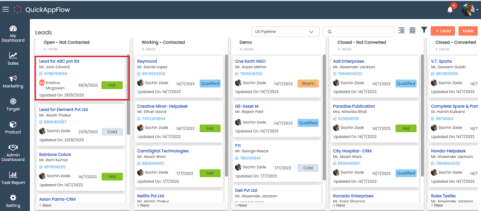 ## View Lead in Different Pipelines