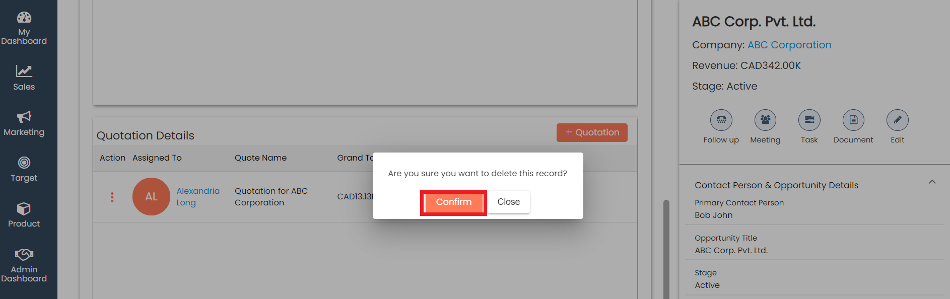 in quotation details for the quotation that you would like to delete and click the Delete button