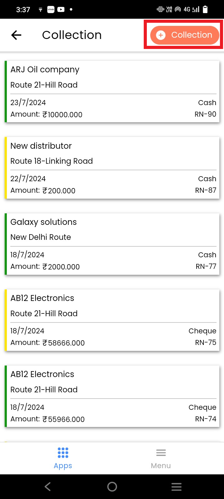 To add payment in collection menu