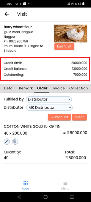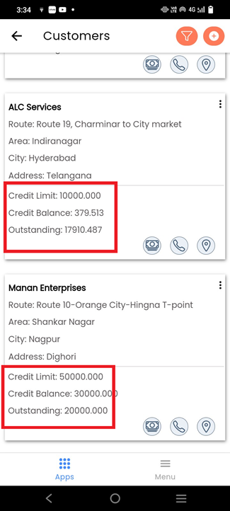 In customer, user can check the credit limit amount, credit balance amount and outstanding amount of the customer