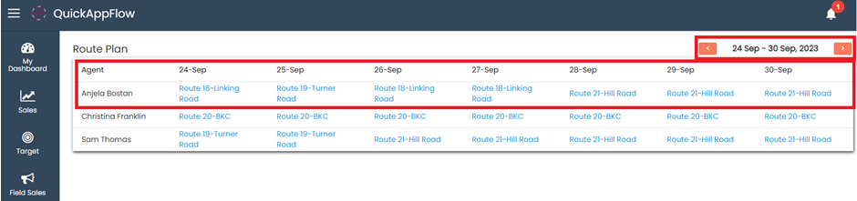 In the route plan, admin can check the weekly plan added by all sales representatives for the assigned routes