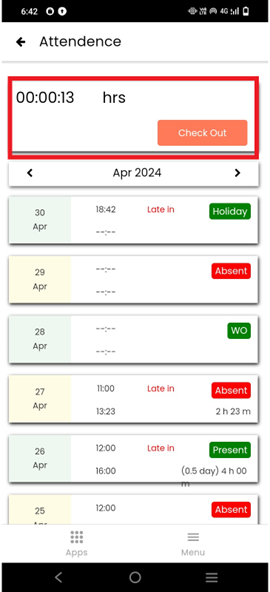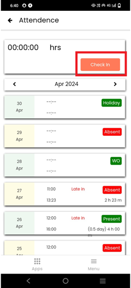 In apps click on the **Attendance**