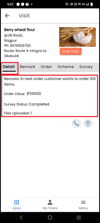 In the visit details page, you can check all the details of the customer