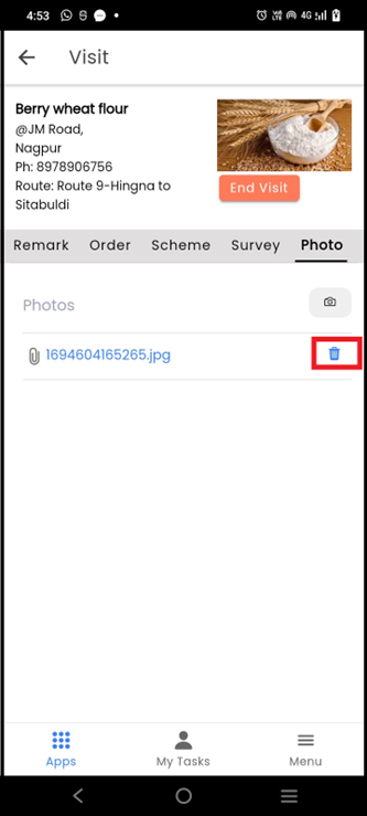 To Delete the photo, click on the Delete icon, the photo will be deleted