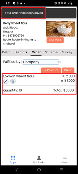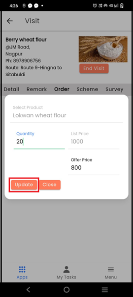 Click on the Remark tab and add all the details in Remark, including the call note and next order date
