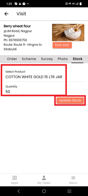 &#x20;If the customer is included in the distributor category, then in the stock tab, you can update or manage the customer inventory for your next site visit (The stock button will not be visible for the customer included in the retailer category)