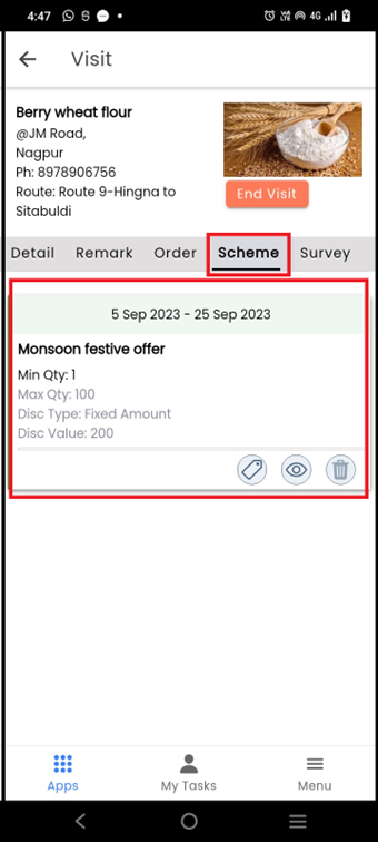 When an added product is in any scheme it will show in the **Scheme** tab