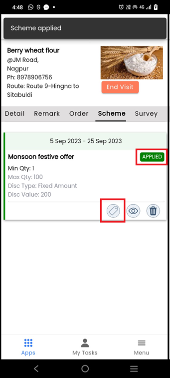 To check all the details of the applied scheme, click on the **View** icon