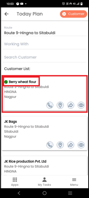 As you select the route you will find the list of customers associated with the selected route. Find your customer in the list where you want to start the Visit