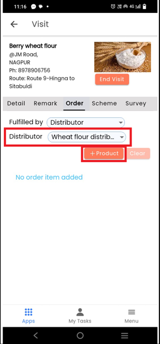 Select a **distributor** from the list and click on **+Product**