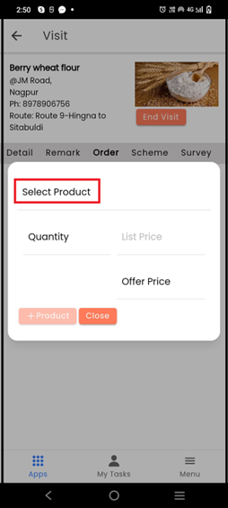 A pop-up will appear. Here, select the **product**
