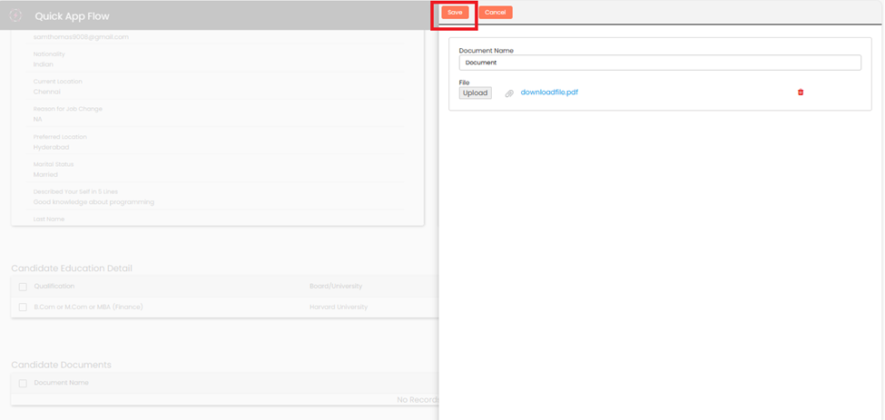 Candidate can **edit** the documents, by selecting the **checkbox**.