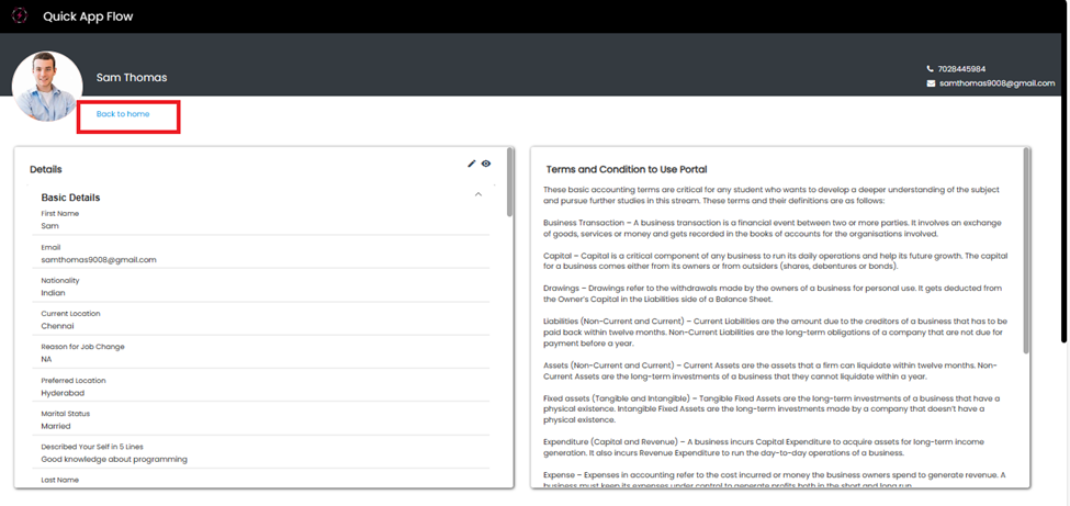Candidate can view **terms and conditions**.