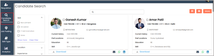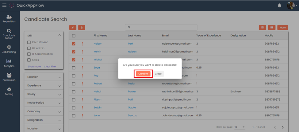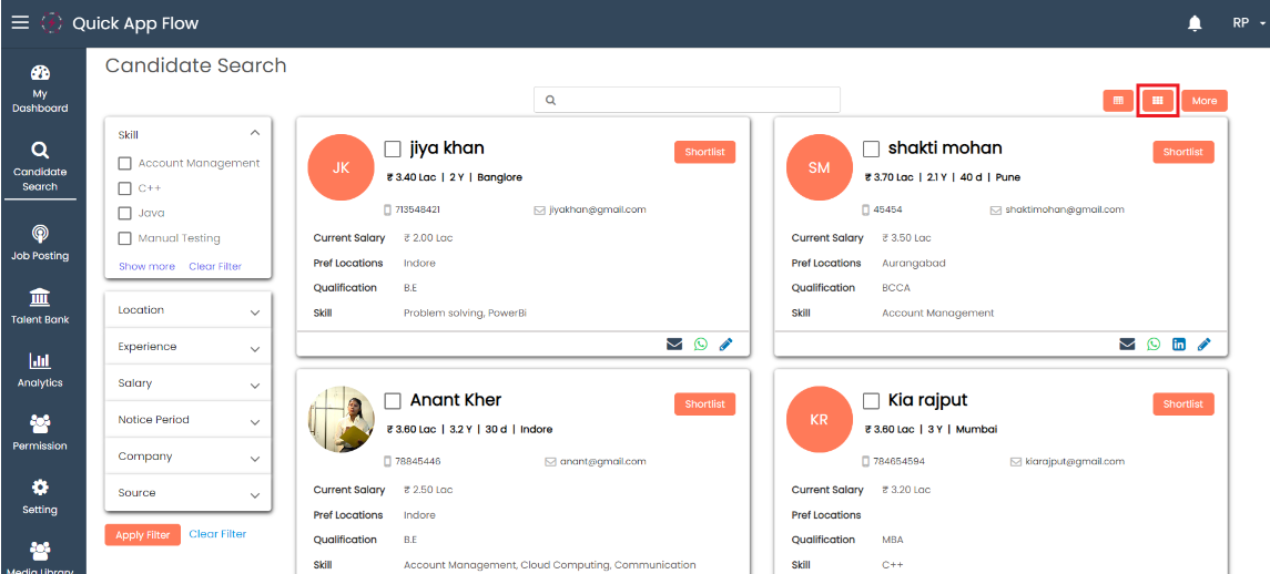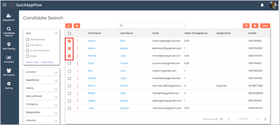 After uploading candidates in xlsx file format. You can see imported candidates in candidate list