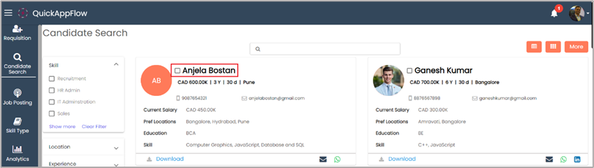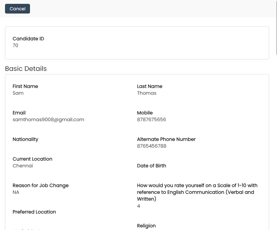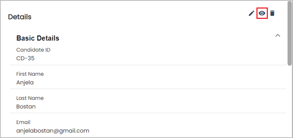 After clicking on View, a pop-up window will appear displaying the candidate's details.